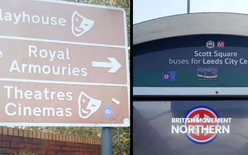 In November 2025, a British Movement member from Worcestershire was visiting family in the Leeds area and although this person was not directly in contact with Leeds BM members, he decided to act on his own initiative and took a stash of BM stickers and a BM Sunwheel flag along on his visit.