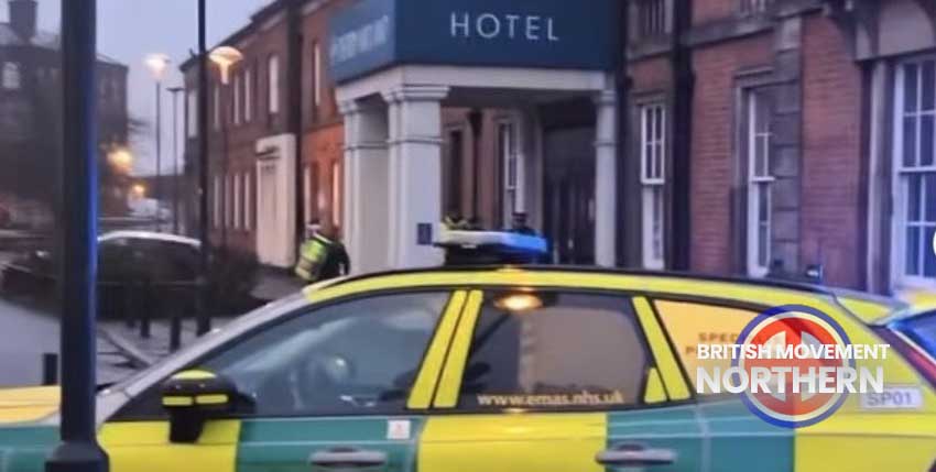 Paramedics outside of Derby’s notorious Derby Midland Hotel.
